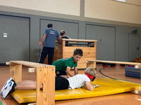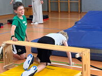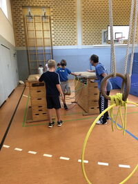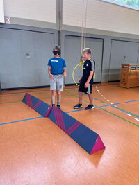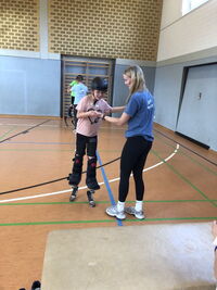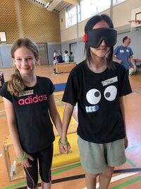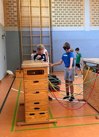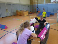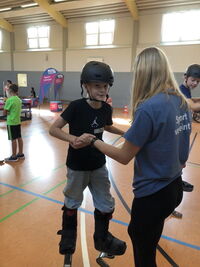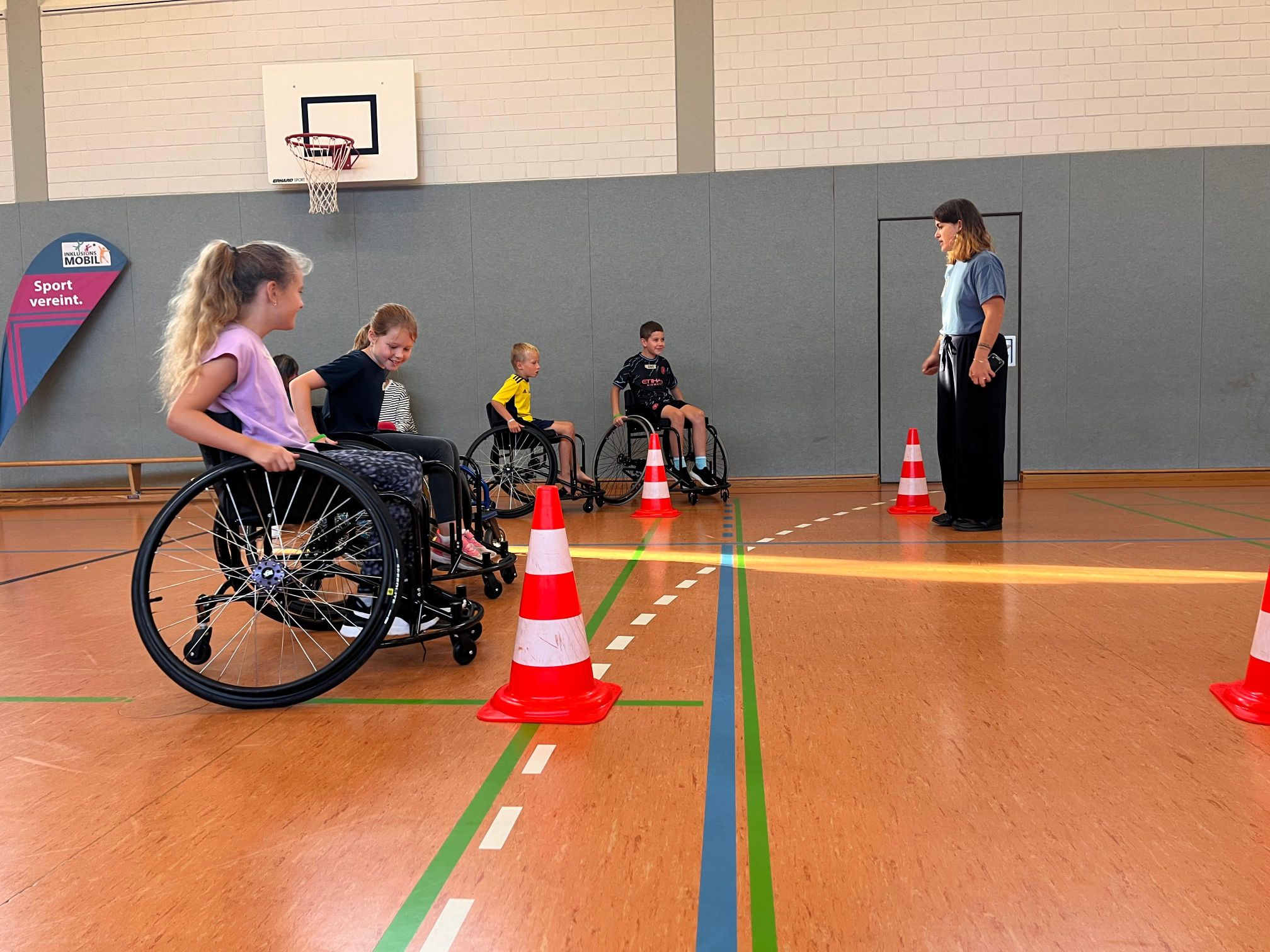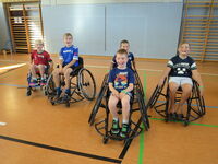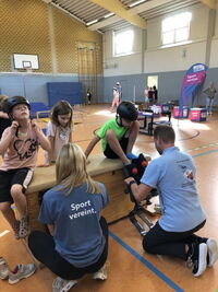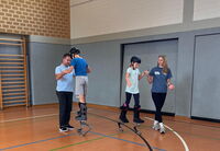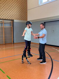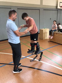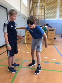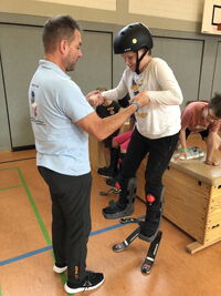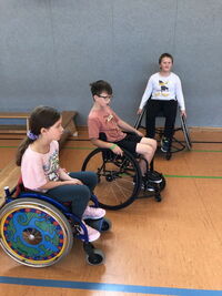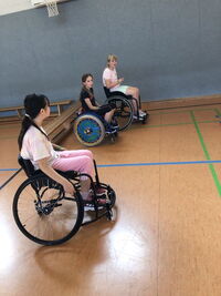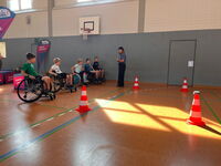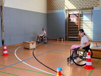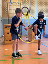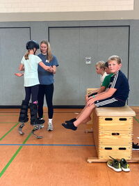 Am 09.09.25 kam das Inklusionsmobil zu uns in die Schule. Die Dritt- und Viertklässler durften an unterschiedlichen Stationen ausprobieren, wie man mit einer Prothese, im Rolli oder blind Sport machen kann. Spielerisch erlebten die Kinder wie es sich anfühlt, eingeschränkt zu sein. Sie tasteten sich mit einer Verdunklungsbrille durch ein Gewirr an Seilen oder versuchten mit einer Beinprothese zu laufen. Besonders viel Spaß machte das Fahren im Rollstuhl.