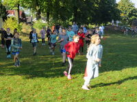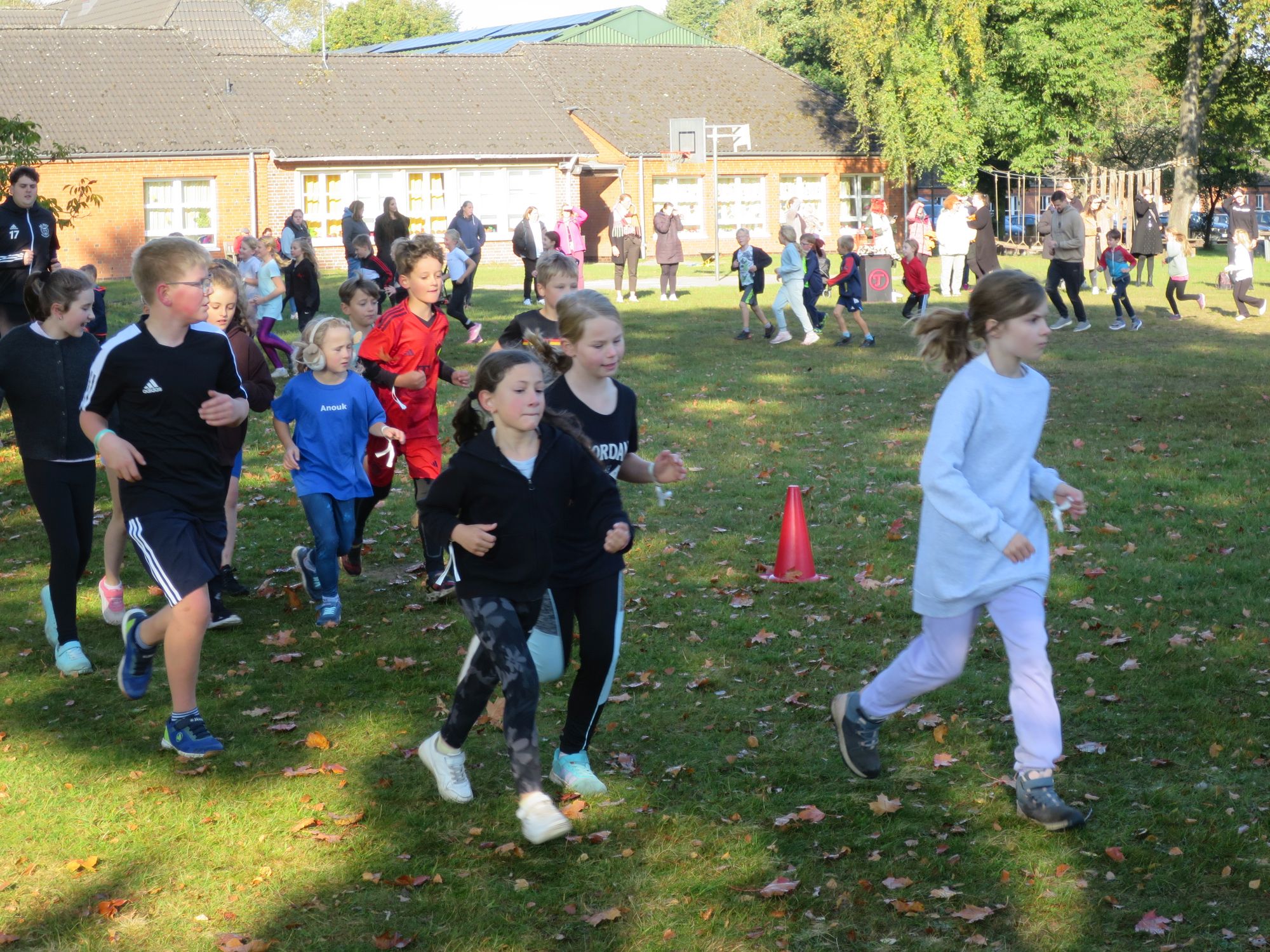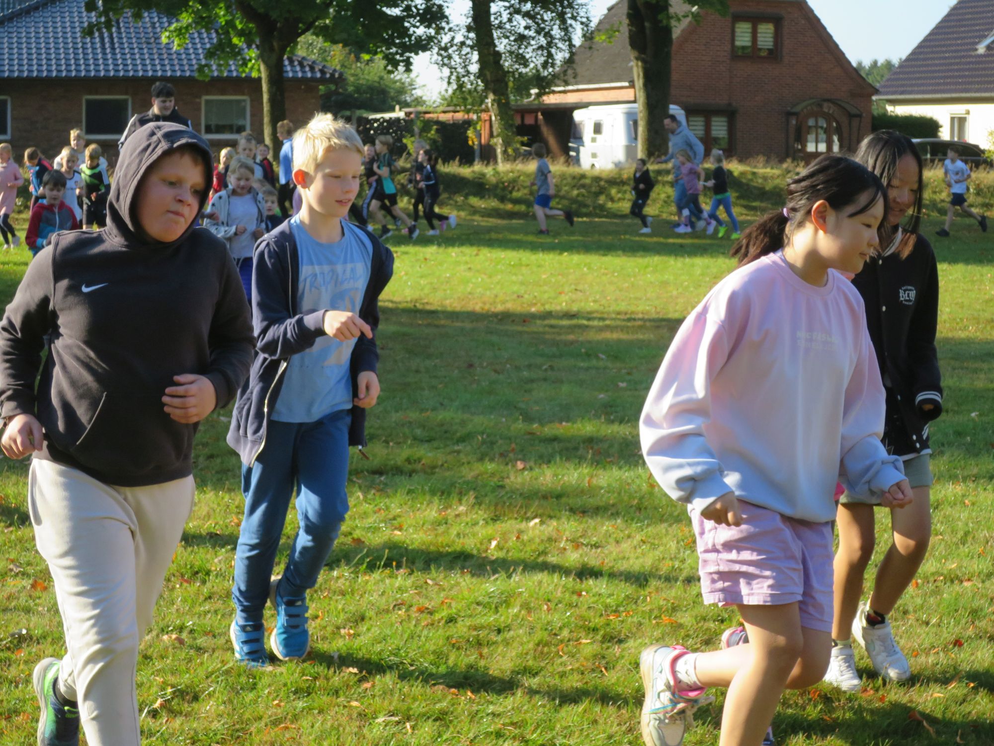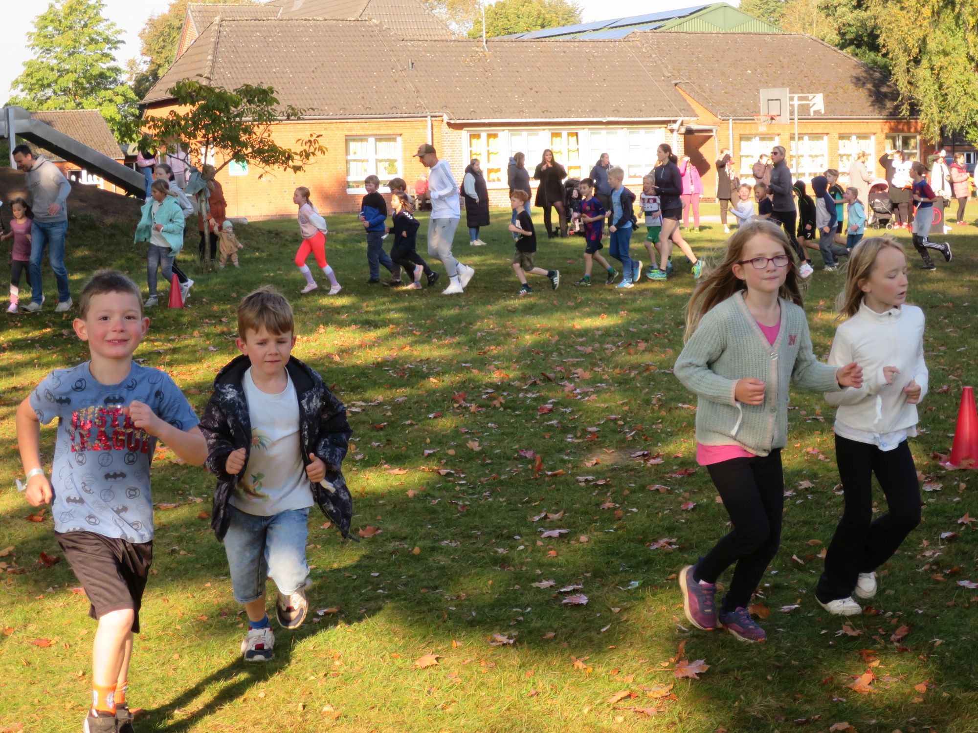 Am 02.10.2025 fand bei herbstlichen Temperaturen unser Lauftag statt! Angefeuert von Eltern, Großeltern und Geschwistern liefen mehr als die Hälfte der knapp neunzig Kinder sechzig Minuten. Die Interessengemeinschaft Kleinkummerfeld versorgte die Läufer anschließend mit Getränken und etwas Obst. Dafür bedanken wir uns ganz herzlich!