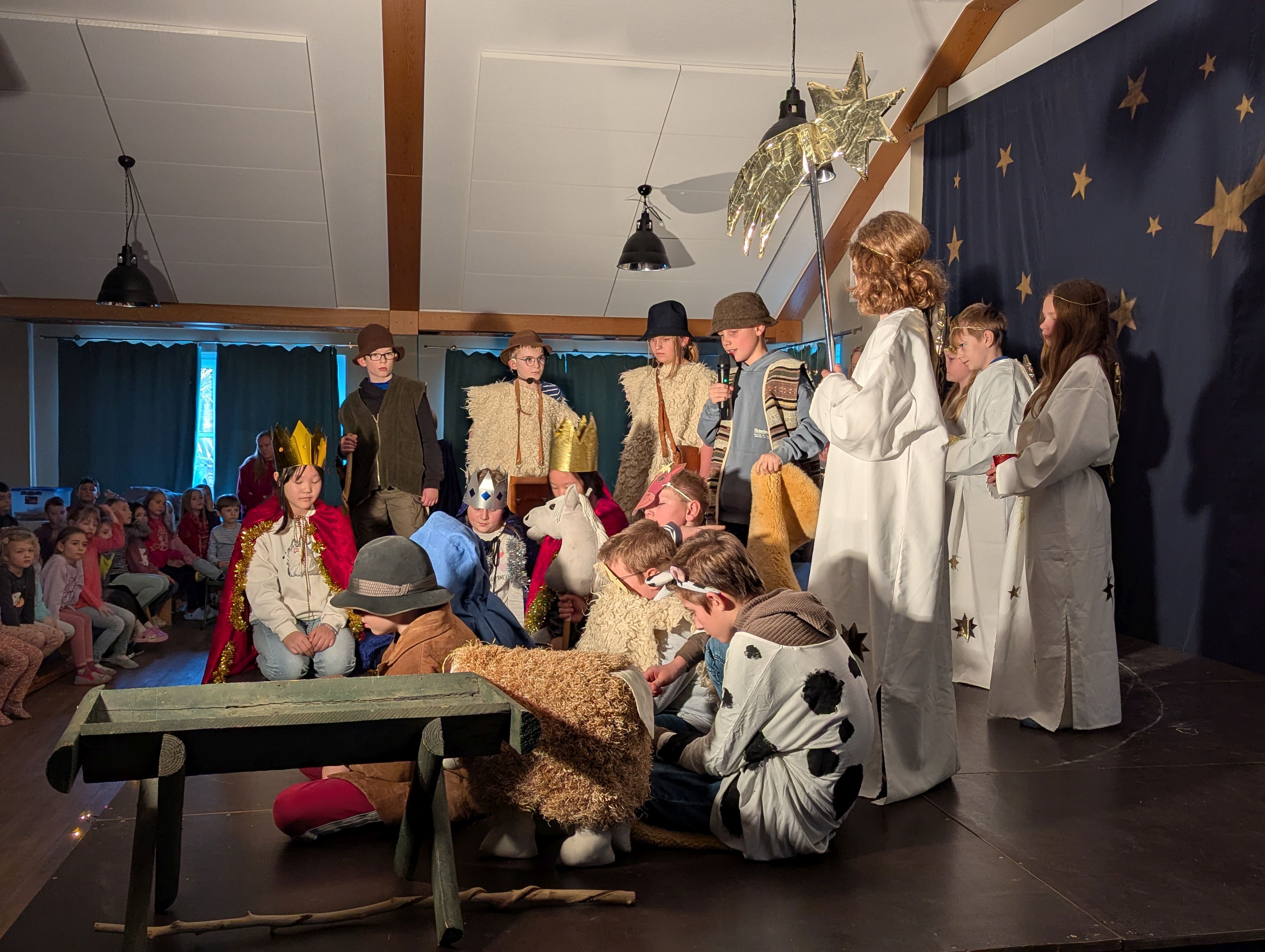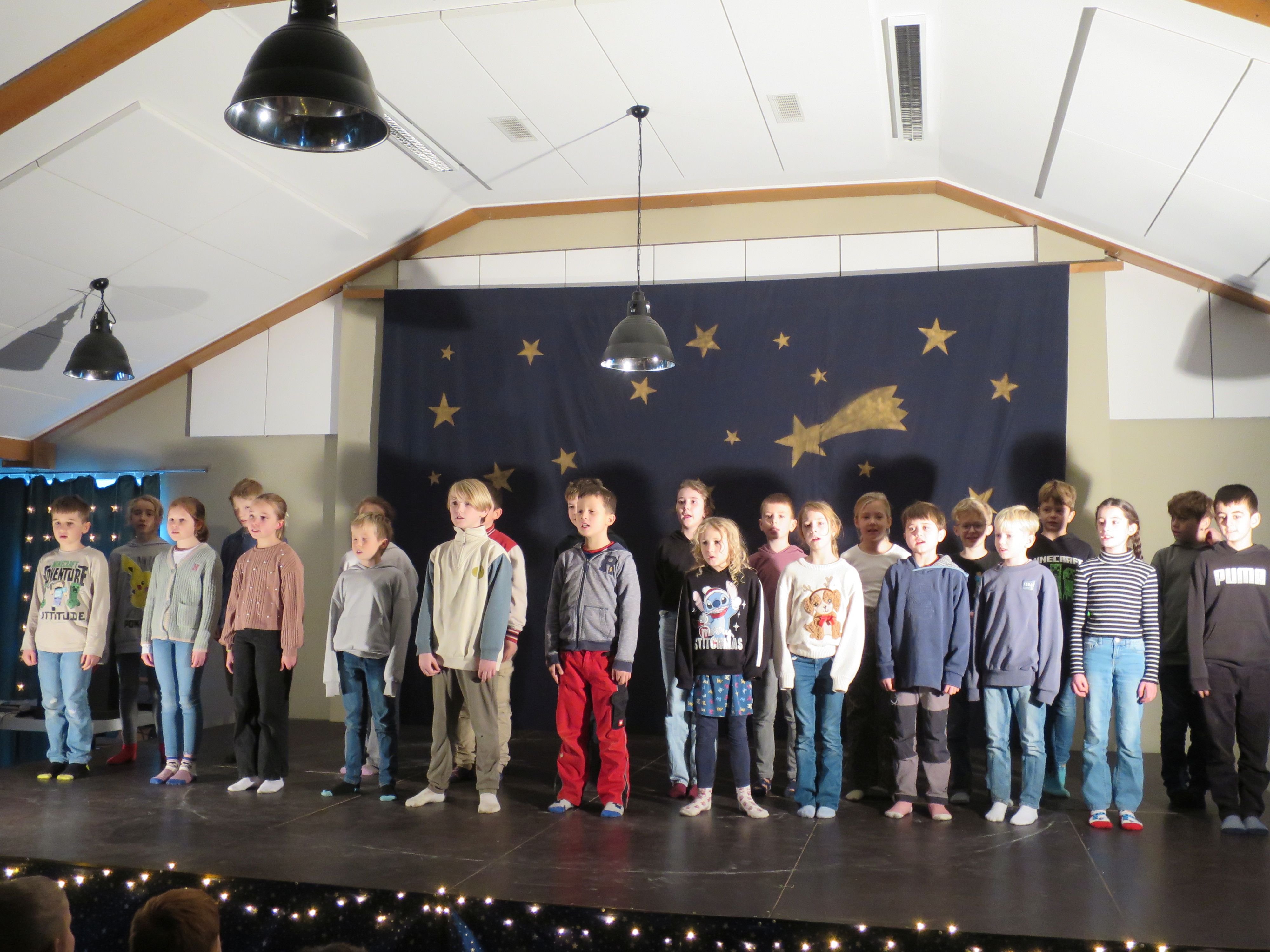 Im Cumerveldhus fand am 16.12.2025 die alljährliche Weihnachtsaufführung der Schule statt. Es wurde wieder ein abwechslungsreiches Programm geboten. Zum Auftakt zeigte uns die Tanz-AG unter der Leitung von Svea Behmer, dass es sehr unterschiedliche weihnachtliche Musikrichtungen gibt, zu denen man tanzen kann. Anschließend sangen alle Schulkinder gemeinsam das Lied „Weihnachten ist eine Zeit“. Instrumental unterstützt wurden sie von Kindern aus der 3. und 4. Klasse. Einige Viertklässler sagten ein englisches Gedicht auf. Danach führten die Erstklässler ihren Kerzentanz auf und die zweite Klasse trug ein Gedicht vor. Henri und Veit aus der 3. Klasse spielten für uns etwas auf der Gitarre und im Anschluss spielte Mia aus der 3. Klasse ein Stück auf dem Keyboard. Dann hörten wir ein plattdeutsches Lied von den Drittklässlern. Das Krippenspiel der 4. Klasse bildete den Abschluss der Weihnachtsaufführung. Alle Kinder zeigten einen großen Einsatz. Das begeisterte Publikum dankte es ihnen mit anhaltendem Applaus. Nach der Aufführung konnten sich die Kinder und Zuschauer in den Räumen der Schule bei Punsch, Kuchen und Schnittchen stärken.